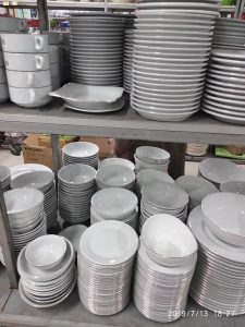 Peralatan Makan: Piring, sendok, garpu, gelas, cangkir, dan peralatan makan lainnya.